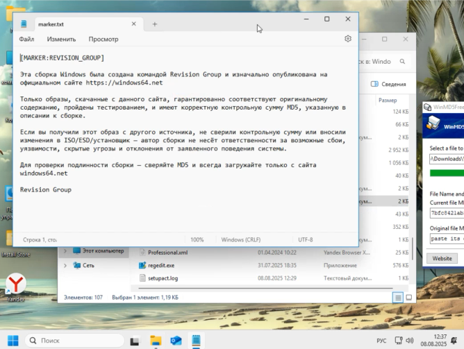 На windows64.net открыта новость с оригинальной сборкой Revision от 03.08.2025